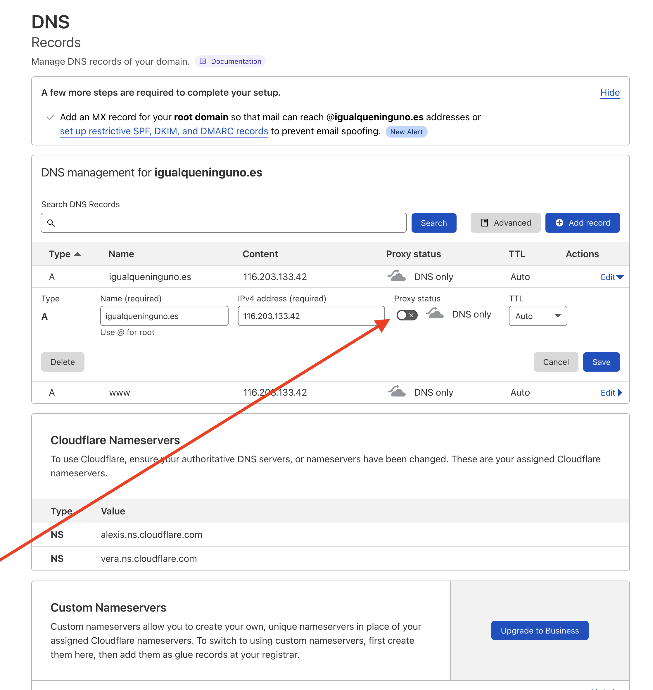 If you are using Cloudflare to manage you DNS, please make sure to